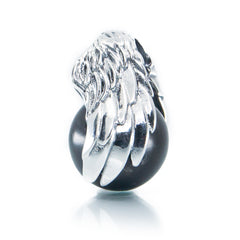 This unique hand finished charm, crafted in Sterling Silver is manifesting the protection in two ways. One is through the design of angel wings, as a symbol of your guardian angel – carrying for and watching over you, just like they care for and protect the black gemstone in-between them. The second one is through the actual protection features of the semi-precious stone that we incorporated into this design.