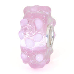 On a delicate Baby pink base, covered with a transparent glass layer, here come five beautiful rose flowers ? each is a raised flower of 5 petals of a baby pink color on a transparent base.All our glass beads are made with the highest quality glass, sourced from all over the world. All our beads have a silver core with a 5 mm hole that fits all European bead brands. Our cores are marked with E925. This logo stands for Elfbeads and sterling silver 925.