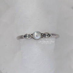 This leaf-inspired ring by PANDORA features a single cultured pearl framed by marquise-cut cubic zirconia stones. Hand-finished from sterling silver, this lustrous style is ideal for stacking with similar band rings.