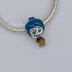Find your inner joy with Pixar's Joy. This sterling silver charm captures the shiny and optimistic personality of the beloved character from Disney and Pixar's Inside Out, with glittery blue enamel for her hair. Joy holds a Memory Orb finished in special glow-in-the-dark enamel to capture the magic of happy memories. Style this charm on your Pandora Moments bracelets or charm holders as a reminder to stay positive and find the joy in every day.