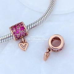 Wear a pop of pink with the Pave Freehand Heart Barrel Charm. Hand-finished in 14k rose gold-plated metal, this charm features synthetic ruby and pink crystal pave in different sizes. In a modern interpretation of the classic heart symbol, a tiny freehand heart detail hangs delicately from the bottom. As a symbol of love, this warm-toned charm will brighten up your look and make you smile every time you wear it.
