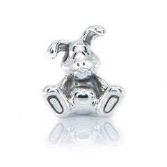 Bunny the rabbit charm has a symbolic meanings. Those are related to abundance, also comfort and vulnerability. Traditionally, rabbits are full with desire, and procreation. Also Bunny the rabbit charm is one of the astrological animals in China, and linked to good fortune. Also people born under Rabbits sign can be very artistic. Rabbit meanings are also closely linked to the seasons, the changes of Mother Earth, and specifically to Spring time. It is not always necessary to hop in the direction other bunnies expect! If you don’t know what to do, please don’t forget! Ideas are like rabbits. You get a couple and learn how to handle them, and pretty soon you have a dozen. Our rabbit would be a beautiful silver charm gift to your family members too. Our Bunny loves flowers, and he would be really happy to see few on your sterling silver bracelet too.