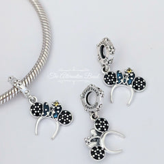 Disney x Pandora Minnie Mouse Ear Headband Dangle silver and blue and black sterling-silver Dangle by The Alternative Bead. Your official Disney x Pandora Retailer from Germany