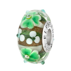 Our four-leaf clover is a hidden gem on the sunny, golden-green meadow. It was created to bring you luck and shimmer all year long.All our glass beads are made with the highest quality glass, sourced from all over the world. All our beads have a silver core with a 5 mm hole that fits all European bead brands. Our cores are marked with E925. This logo stands for Elfbeads and sterling silver 925.