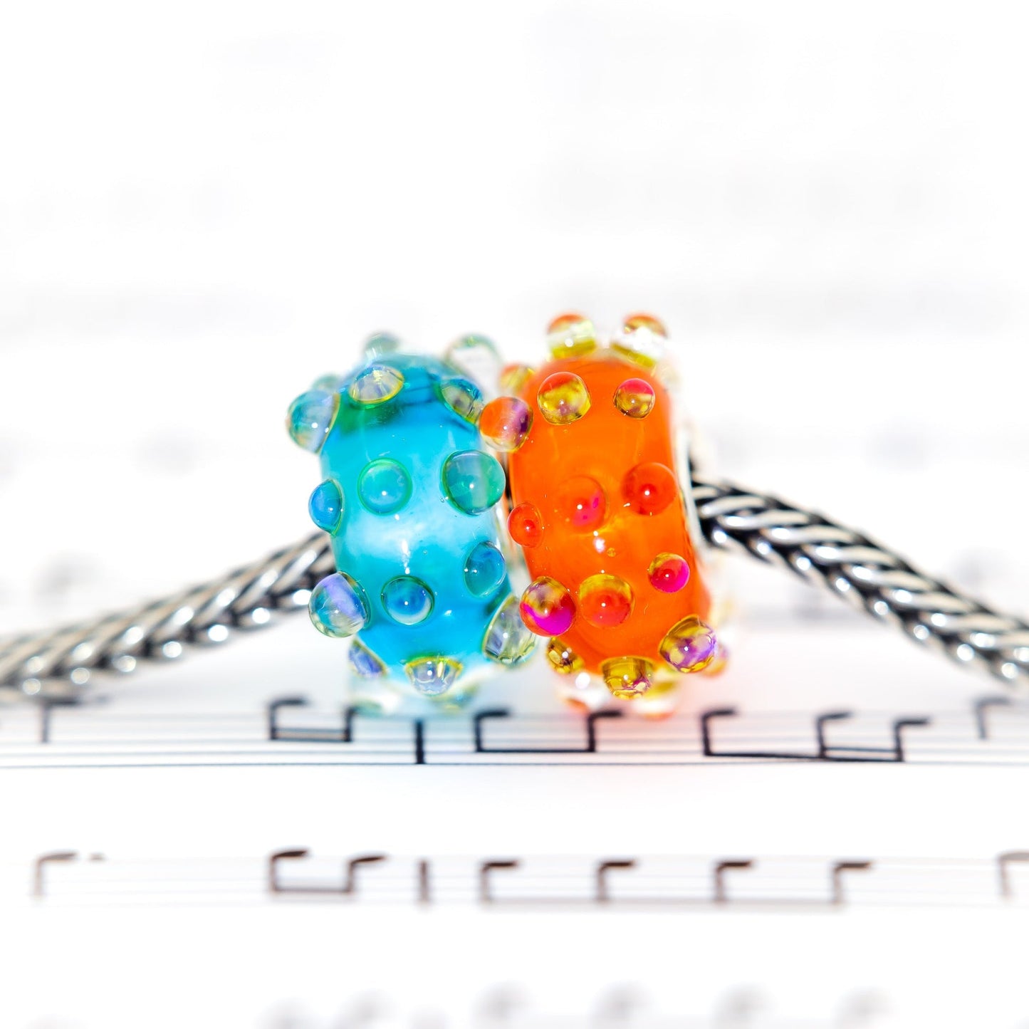 This bead reflects the depth of the water seen through the splashes of raindrops on a sunny Spring day. All our glass beads are made with the highest quality glass, sourced from all over the world. All our beads have a silver core with a 5 mm hole that fits all European bead brands. Our cores are marked with E925. This logo stands for Elfbeads and sterling silver925. If you want to be sure if your bead is an original Elfbeads, you can check the logo in the core.Teilen