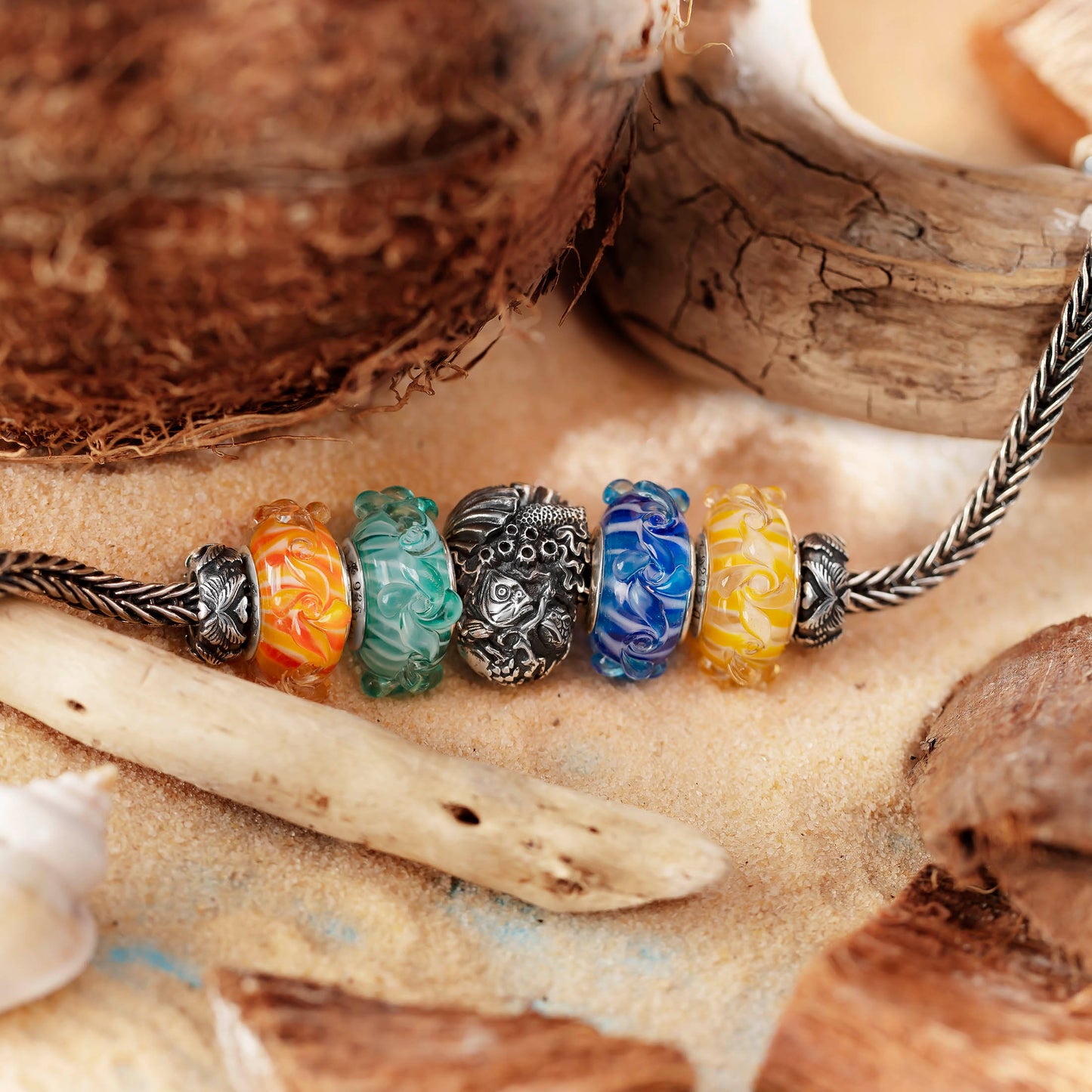 All our glass beads are made with the highest quality glass, sourced from all over the world. All our beads have a silver core with a 5 mm hole that fits all European bead brands. Our cores are marked with E925. This logo stands for Elfbeads and sterling silver 925.