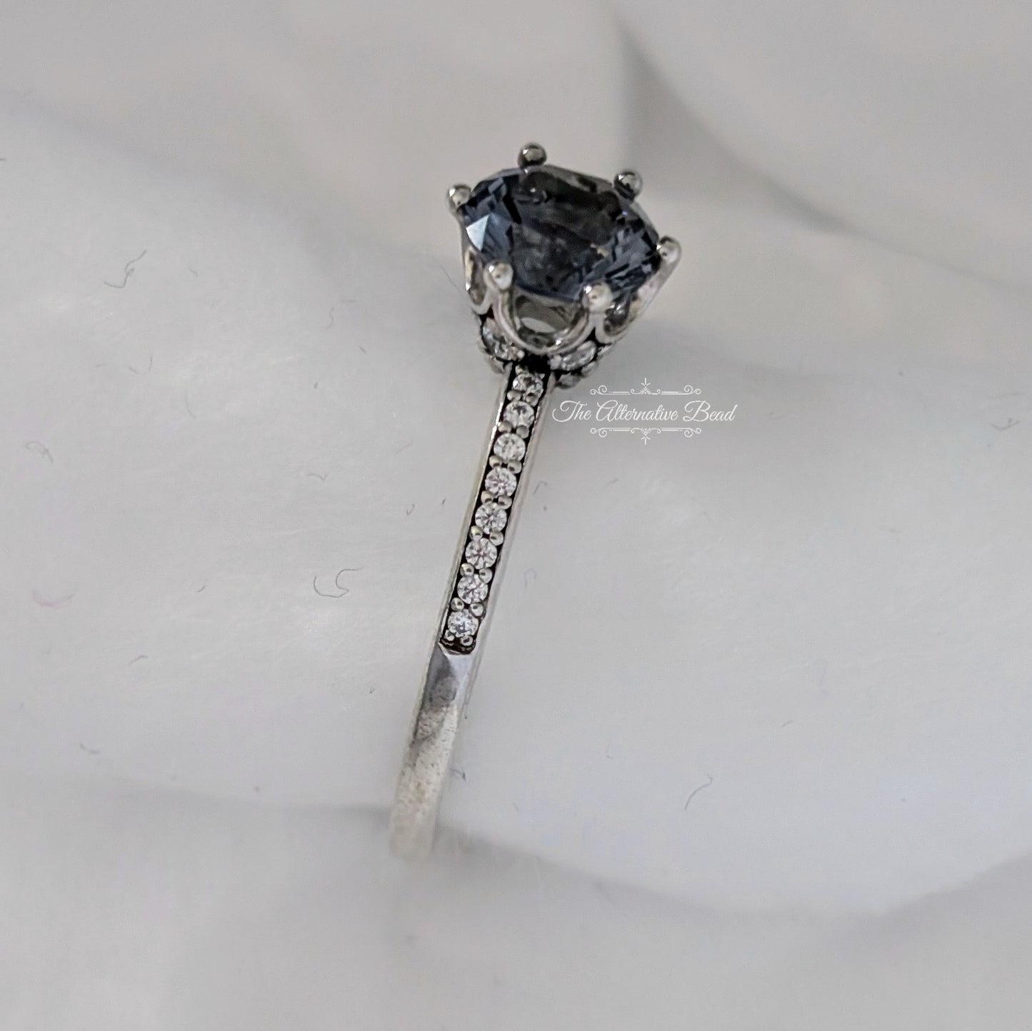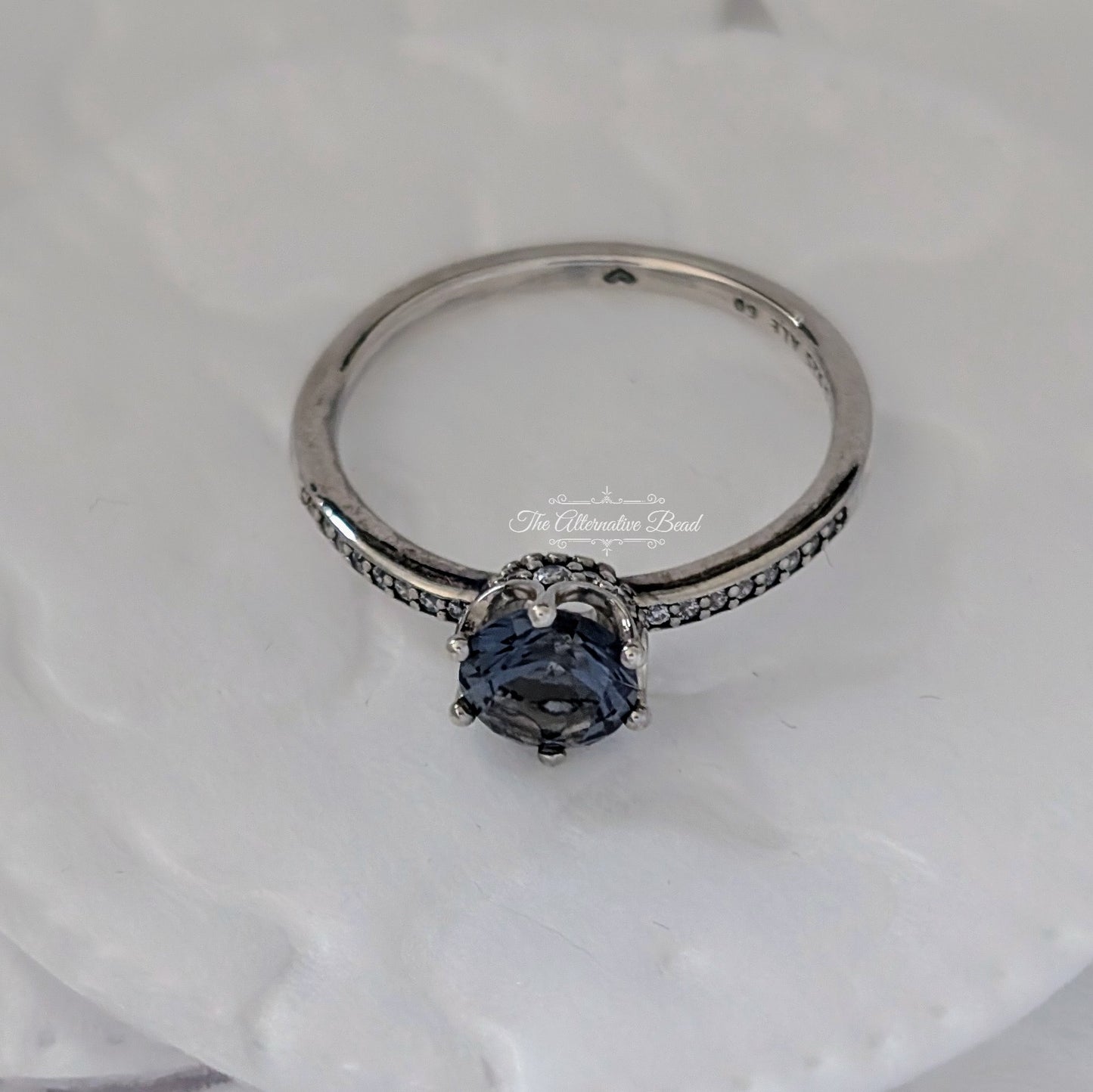Bring an explosion of sparkle to your outfits with the sterling silver Clear Sparkling Crown Ring. The claw setting of the large blue crystal creates the effect of a regal crown on the solitaire ring and is complemented by additional small stones set along the ring band. A ring that’s fit for the special princess or queen in your life, it can be paired with most other selections from the Pandora collection for a truly regal look.