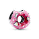 A jewellery gift as sweet as your love. The Sparkling Sprinkled Donut Charm is inspired by a universe of pop art and saturated candy colours. This playful yet modern charm takes the shape of a donut in sterling silver, complete with hand-applied pink gradient enamel frosting and a bite taken out of one side (who can resist a delicious donut?). The frosting is topped with polished silver sprinkles, one clear cubic zirconia and two Aurora Borealis cubic zirconia - shimmering with clear, pink and blue tones depending on how the light hits. The back is engraved with the words "Love at the first bite." An irresistible treat to add to your favourite Pandora jewellery.